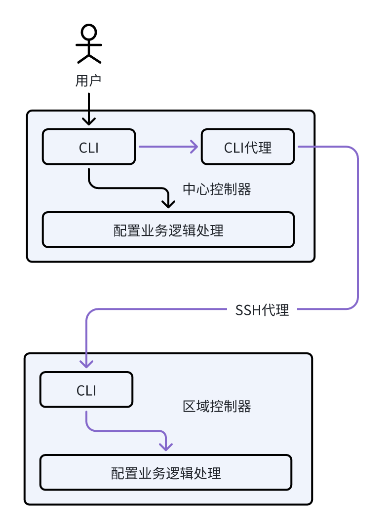 中心控制器通过CLI配置的信息,由中心控制器通过CLI代理,下发到区域控制。